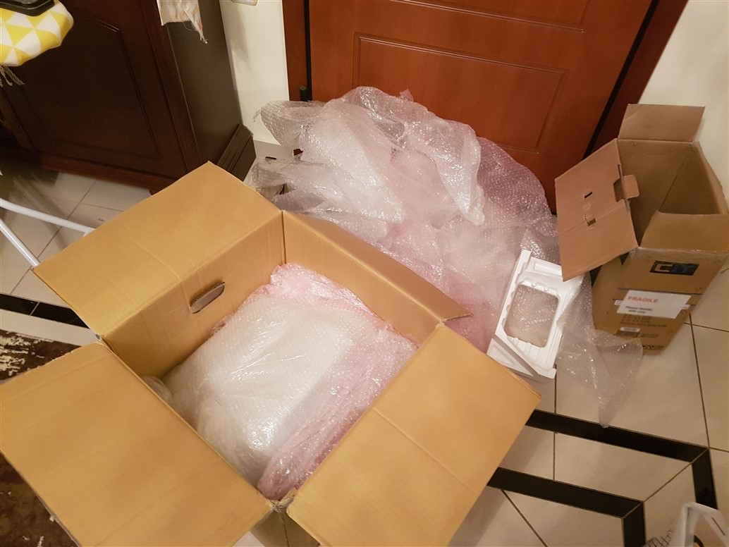 Οπότε πρώτα το ανέβασα στο σπίτι μου (και ας ήταν θεόβαρο μαζί με την οθόνη και τα παρελκόμενα) και το άνοιξα επιτόπου εκεί μέχρι να ξελαχανιάσω και λίγο από το κουβάλημα στις σκάλες.