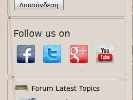 Έτσι προστέθηκε ένα κουτάκι με τα κοινωνικά δίκτυα του site μας το οποίο βρίσκεται σε όλες τις σελίδες πλην του φορουμ (το φόρουμ το έχω να τρέχει σε full screen για να είναι πιο ευανάγνωστο).