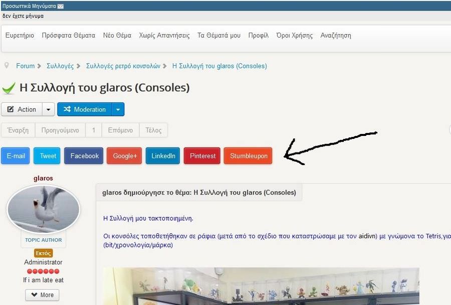 Προστέθηκαν στο φόρουμ κουμπιά για τα κοινωνικά δίκτυα ώστε να μπορείτε να μοιραστείτε / κοινοποιήσετε στο facebook / twitter / Google+ κτλ τα θέματα του φόρουμ.