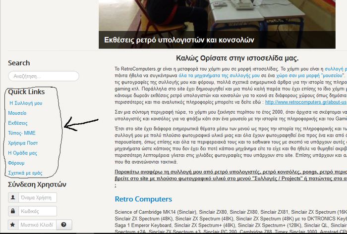 Δημιουργήθηκε ένα μικρό module στα αριστερά του site με τίτλο Quick Links (είναι ορατό παντού στο site εκτός από το φόρουμ) όπου περιέχει διάφορους συνδέσμους από το slideshow της αρχικής σελίδας και από τα μενού για πιο εύκολη και γρήγορη επιλογή τους και ενδέχεται να προσθέτουμε και άλλους χρήσιμους συνδέσμους αν / όποτε χρειαστεί :