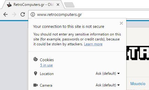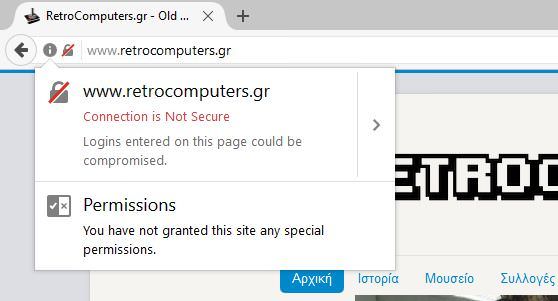 Έτσι πριν κάνουμε τη μετάβαση στο https, ανάλογα με τον browser που χρησιμοποιούσαμε (π.χ. Firefox, Chrome κτλ) βλέπαμε διάφορα warnings ότι η σύνδεση δεν είναι ασφαλής (αυτό γίνεται πλέον από όλους σχεδόν τους browsers όταν ανοίγουν sites με "απλό" http. π.χ.
