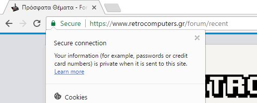 Έτσι λοιπόν μετά από κάποιες μικρές περιπέτειες και 2-3 μέρες δοκιμών κτλ όλα έχουν καλώς και το HTTPS λειτουργεί στο site κανονικά όπως μπορείτε να δείτε πλέον αφού έχει μπει το "s" στο http στο URL και οι browsers πλέον δεν βγάζουν warning για μη ασφαλή σύνδεση αλλά χαρακτηρίζουν το site με πράσινο χρώμα ως secure :