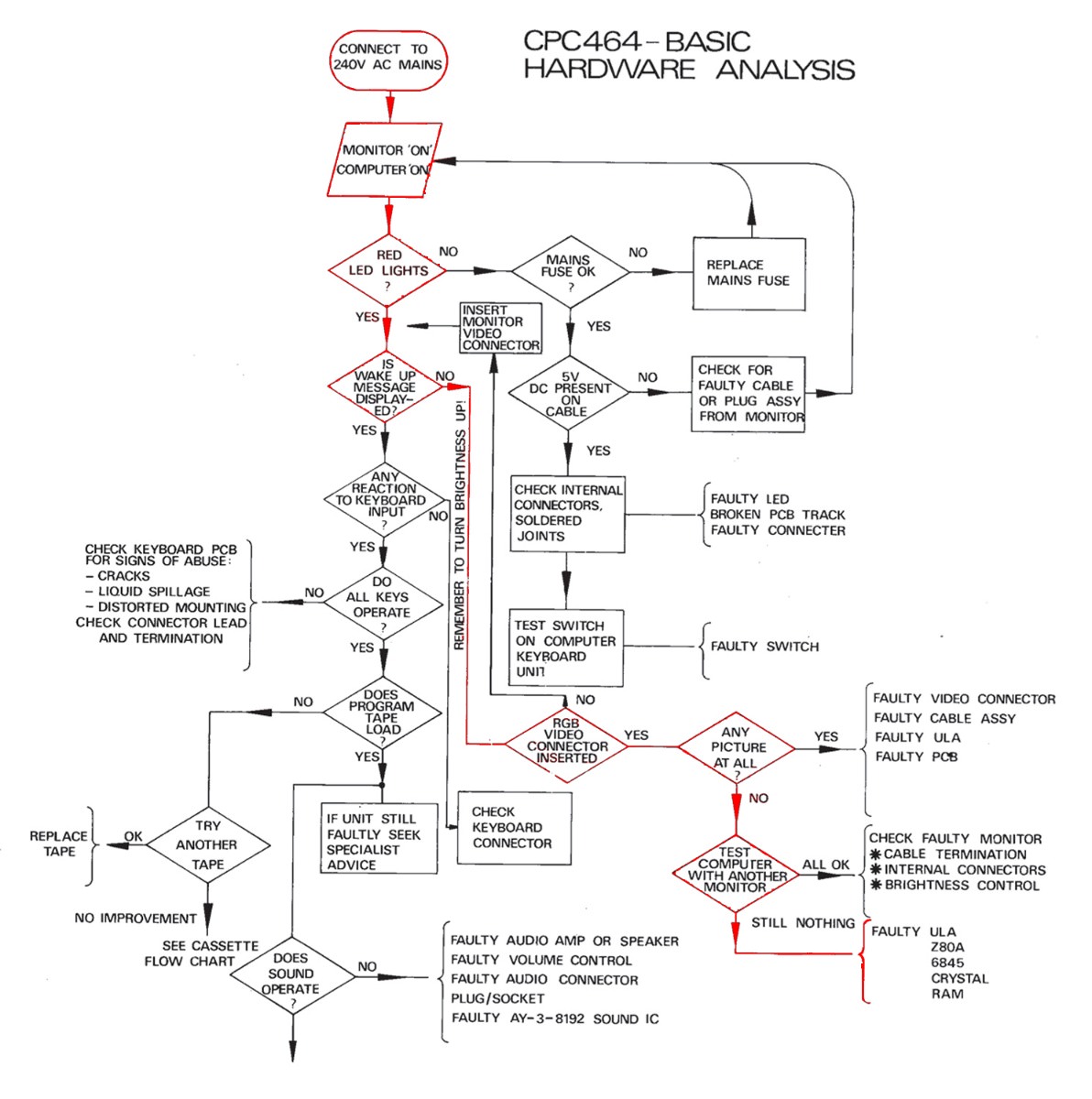 Να εξετάσεις με το πολύμετρο τις πίστες (tracks continuity test) γύρω απο την CPU, rams, ULA κτλ για να δεις μήπως υπάρχει καμιά κομένη που δεν φαίνεται με το μάτι. Κάνε έλεγχο στις βάσεις για ψυχρές κολλήσεις. Ρίξε μια ματιά για οξειδώσεις και κάνε έναν έλεγχο τις διόδους (επίσης ψιλοσπάνιο να βρεις καμμένη σε CPC)