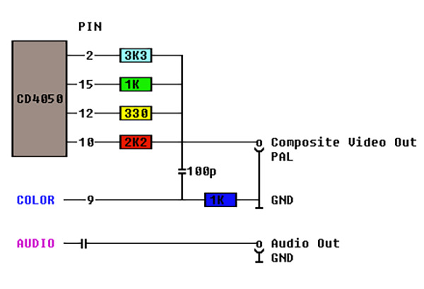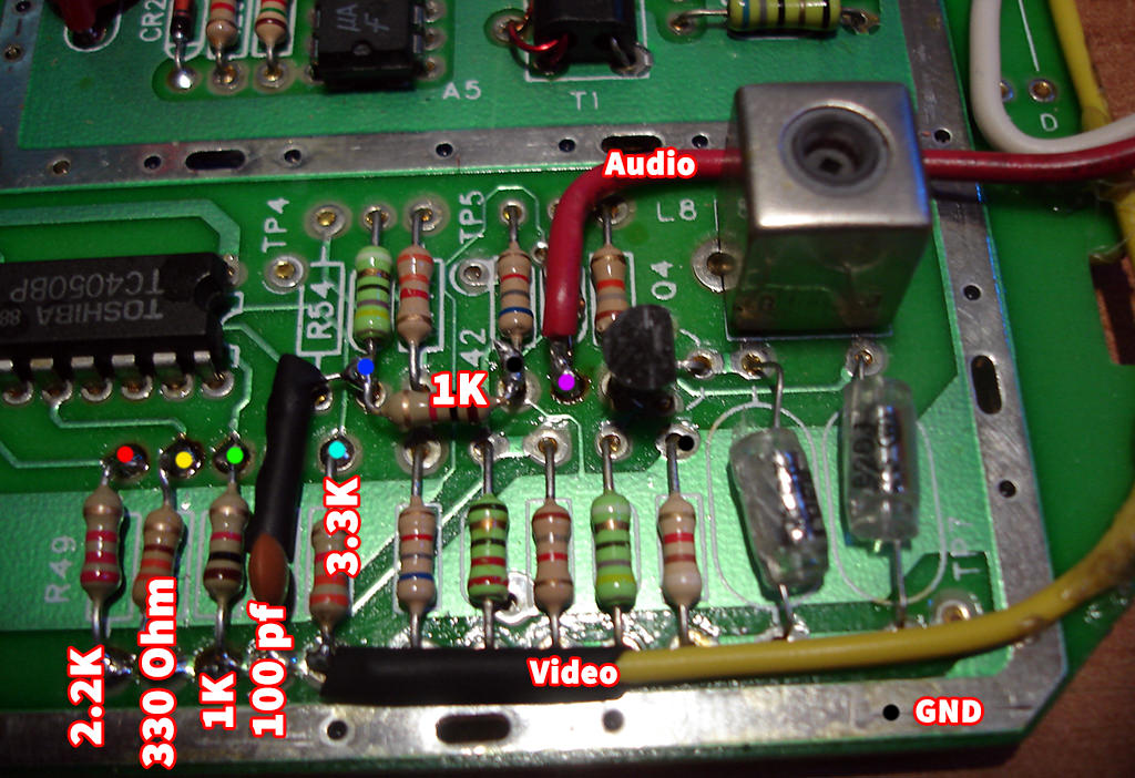 και όπως και στην παραπάνω έκδοση παίρνω από τα αντίστοιχα σημεία γείωσε +5v και σήμα video.... για να τα δώσω στο input του κυκλώματος.