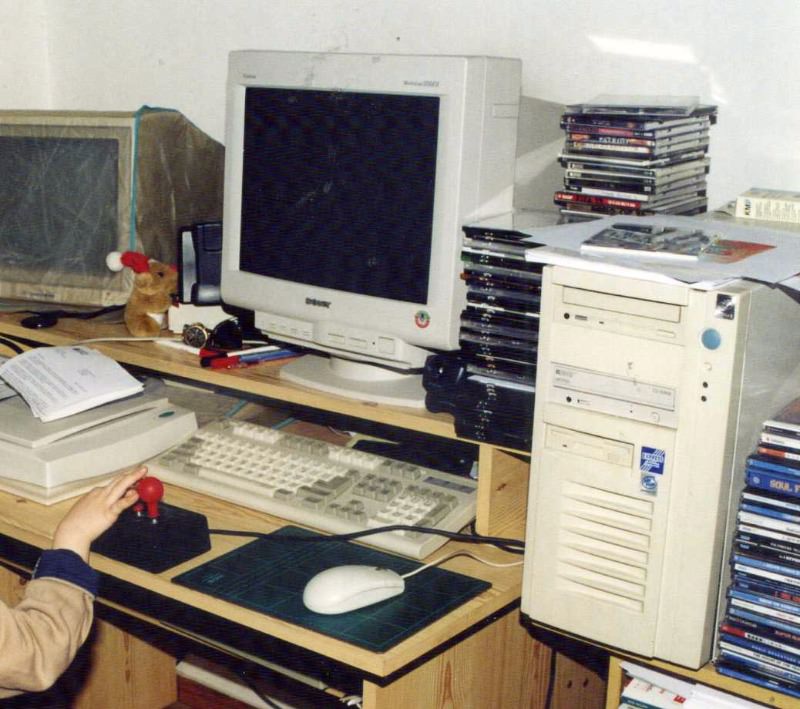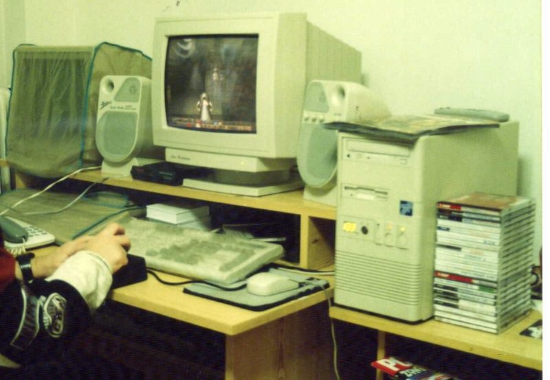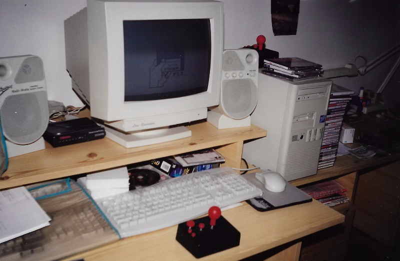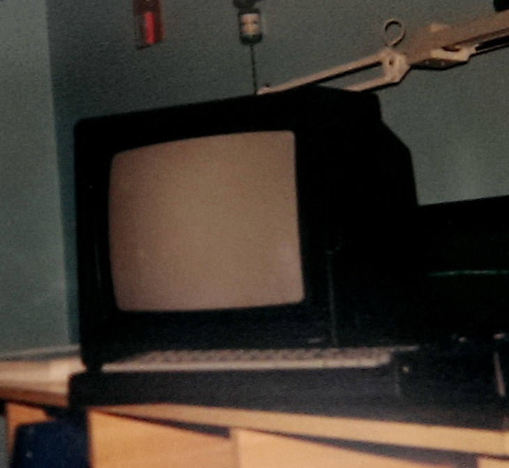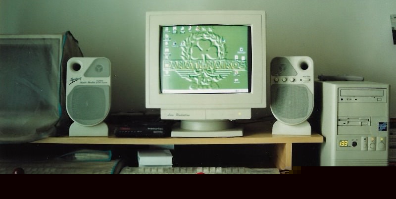 Δυστυχώς, αν και ασχολούμαι 33 χρόνια μ'αυτά τα μαραφέτια, δε θυμάμαι να έχω βγάλει ούτε μία φωτογραφία μπροστά από υπολογιστή και σίγουρα δεν έχω από το παιδικό μου δωμάτιο, με το σπέκτρουμ στο γραφείο και το πράσινο Timex μονιτοράκι...