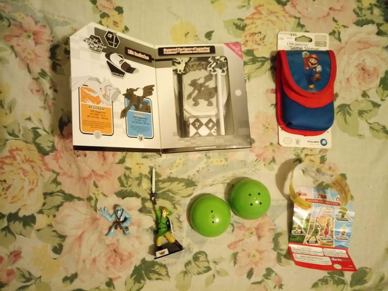 Δύο θήκες Nintendo DS Lite/ Nintendo DSi, μία φιγουρίτσα του Pokemon Sawk και μια φιγούρα του Link από το Legend of Zelda Skyward Sword (δώρο από τον Retro Mario :') <3 ) !!!