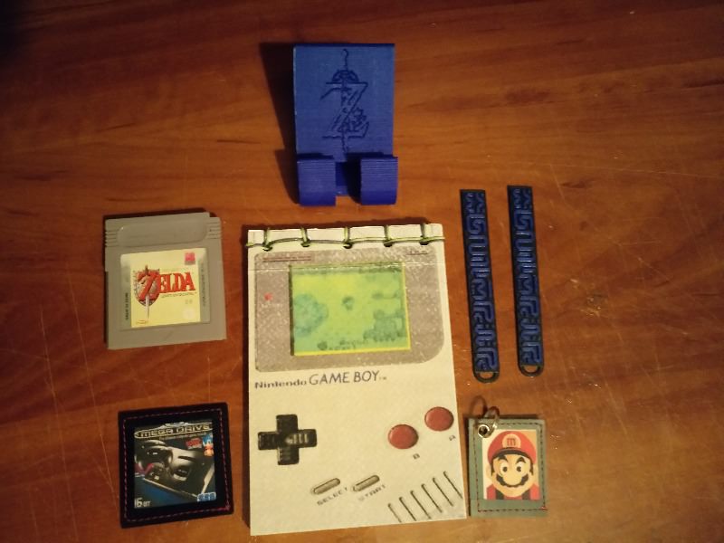Βάση για Nintendo Switch (ή οτιδήποτε στο μέγεθος του), χειροποίητη μαζί με δύο μπρελόκ που πάνω τους έχουν γραφή από τα γράμματα του νέου παιχνιδιού της σειράς Legend of Zelda, Breath of the Wild. Σημειωματάριο με σχέδιο το κλασσικό GameBoy, μαγνητάκι με σχέδιο το Sega Mega Drive μαζί με τον sonic, μπρελόκ/κρεμαστό με σχέδιο τον Super Mario. Και, φυσικά το παιχνίδι της σειράς Legend of Zelda, Link's Awakening, για το κλασσικό GameBoy.