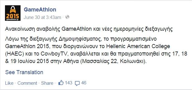 Το site έχει ενημερωθεί με τις νέες ημερομηνίες. Οι ώρες στα πάντα είναι ίδιες, απλά άλλαξε για τις 17, 18, 19 Ιουλίου 2015. Μπορείτε να βρείτε και πάλι όλες τις πληροφορίες εδώ: www.gameathlon.gr