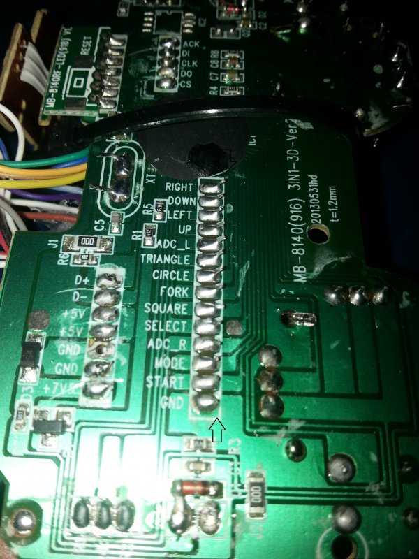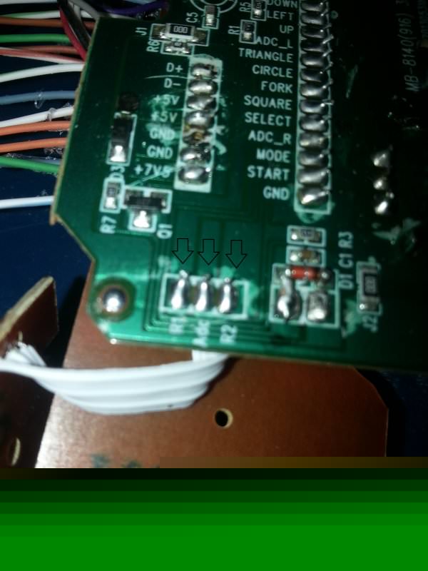 και από κάθε επαφή του joypad τράβηξα(κόλλησα) ενα καλωδιάκι