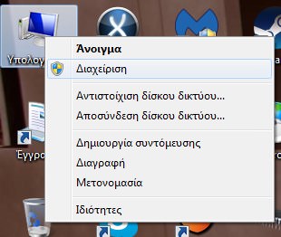 Αρχικα, να σημειωσουμε οτι ο σκληρος θελει συγκεκριμενη μορφοποιηση για να διαβαστει απο το ps2, την οποια και θα κανουμε με το winhiip. Συνδεουμε τον σκληρο δισκο που θα χρησιμοποιησουμε ειτε με κουτακι usb, ειτε κατευθειαν με sata στο πισι μας. Υστερα πηγαινουμε στον Υπολογιστη και κανουμε δεξι κλικ. Στο μενου που βγηκε διαλεγουμε Διαχειριση