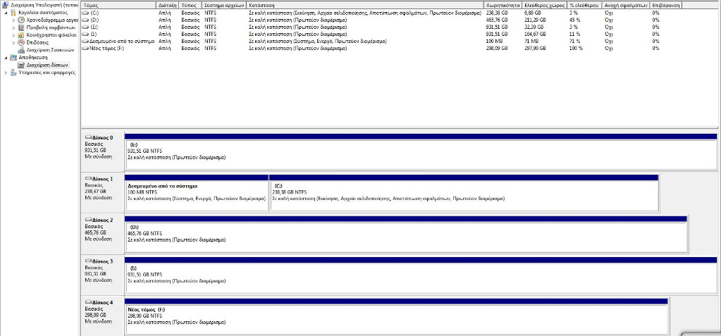 Στο επομενο παραθυρο διαλεγουμε "Διαχειριση δισκων" απο την αριστερη στηλη και θα δουμε αυτο το παραθυρο