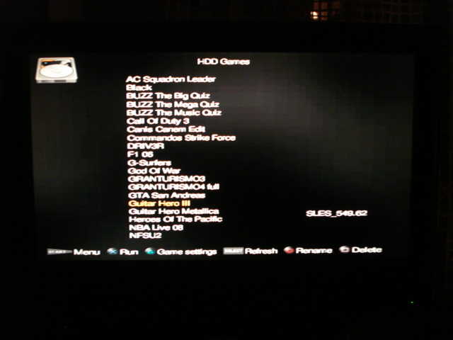 Παταμε τον κυκλο και υστερα το Χ για να ενεργοποιησουμε τον σκληρο, και θα εμφανιστουν τα παιχνιδια μας! Παταμε το Χ, και το παιχνιδι μας θα παιξει κανονικα. Καλο καψιμο!