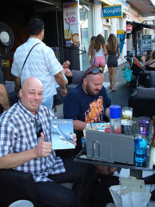 Ο ένας ποζάρει με το falcon 4 και ο άλλος παίζει street fighter.