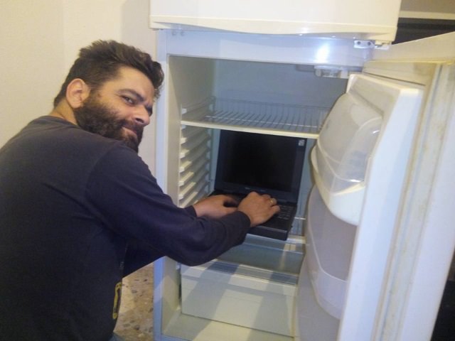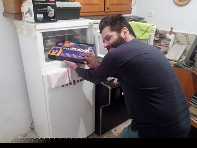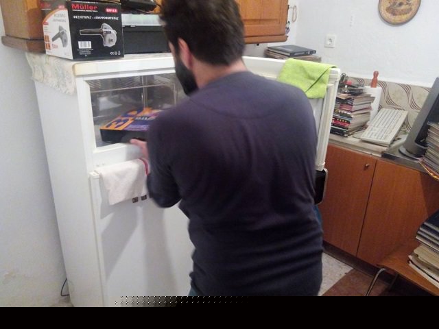 Ο Νεκτάριος λοιπόν βοήθησε να συμμαζέψουμε κάποια πράγματα για να υπάρχει χώρος για να βάλω τα επιπλέον ράφια κτλ και είχαμε και χαβαλέ αφού είχε απελπιστεί σε κάποια φάση με τα πράγματα που δεν είχε που να τα ακουμπήσει και για το χαβαλέ αρχίσαμε "τα παιδία παίζει" βάζοντας πράγματα σε ντουλάπια και στο ψυγείο