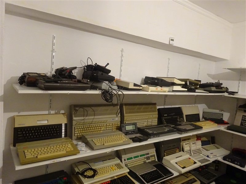 Στο αριστερό ράφι μπήκαν υπολογιστές Sinclair, Commodore, Amstrad και Atari και στο πάνω ράφι θα μπουν ή χειριστήρια ή παιχνίδια :