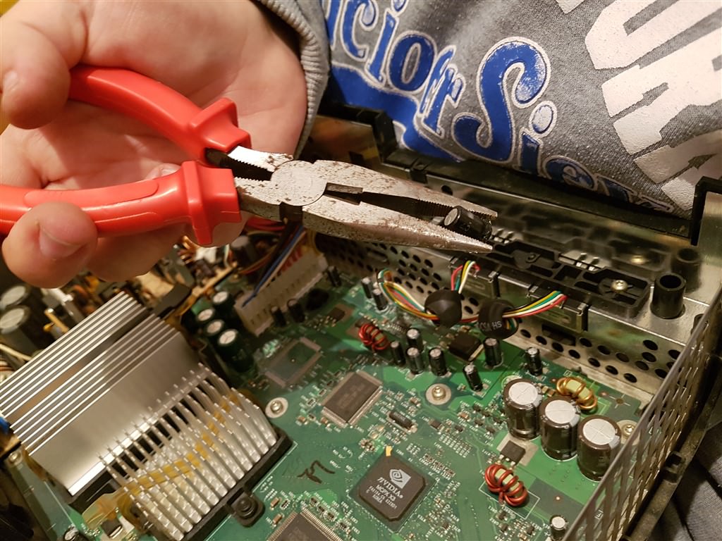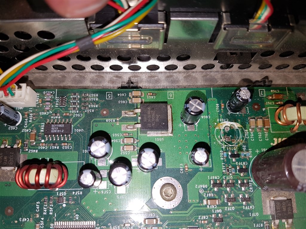 Δεν προλάβαμε να κάναμε δουλειές αναδιοργάνωσης του χώρου σήμερα αφού ήταν πιο πολύ σαν αναγνωριστική επίσκεψη, αλλά ο Κώστας διακρίνοντας δύο XBOX1 που είχα στο ράφι (το ένα το είχα ως μη λειτουργικό), μου πρότεινε να τα ανοίξει να τσεκάρει για να δει για ένα συγκεκριμένο πυκνωτή που στάνταρ με τα χρόνια σκάει και διαβρώνει την πλακέτα. Στο ήδη χαλασμένο που έχω διαπιστώθηκε ότι ο πυκνωτής ήταν ήδη σκασμένος (αφαιρέθηκε βέβαια και αυτός) και είχε διαβρώσει την πλακέτα - βρέθηκε και ο λόγος προφανώς στο γιατί ήταν χαλασμένη η κονσόλα, αλλά ευτυχώς στο άλλο το λειτουργικό XBOX1 δεν είχε σκάσει ακόμα και έτσι αφαιρέθηκε πριν κάνει τη ζημιά.