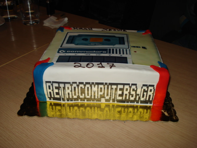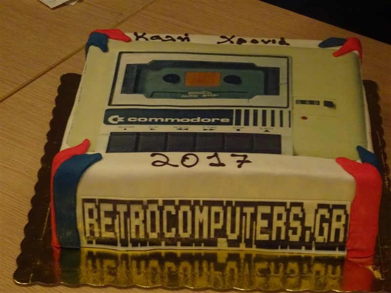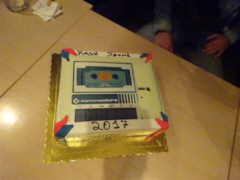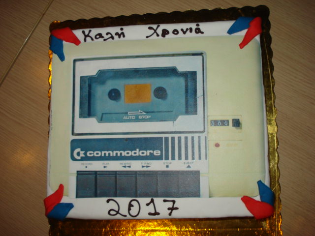 Φυσικά να ευχαριστήσουμε πολύ την Ελευθερία και το ζαχαροπλαστείο Candy ( SITE , Facebook ) για την πεντανόστιμη πίτα που μας έφτιαξε η οποία είχε σαν σχέδιο ένα κασετόφωνο της Commodore