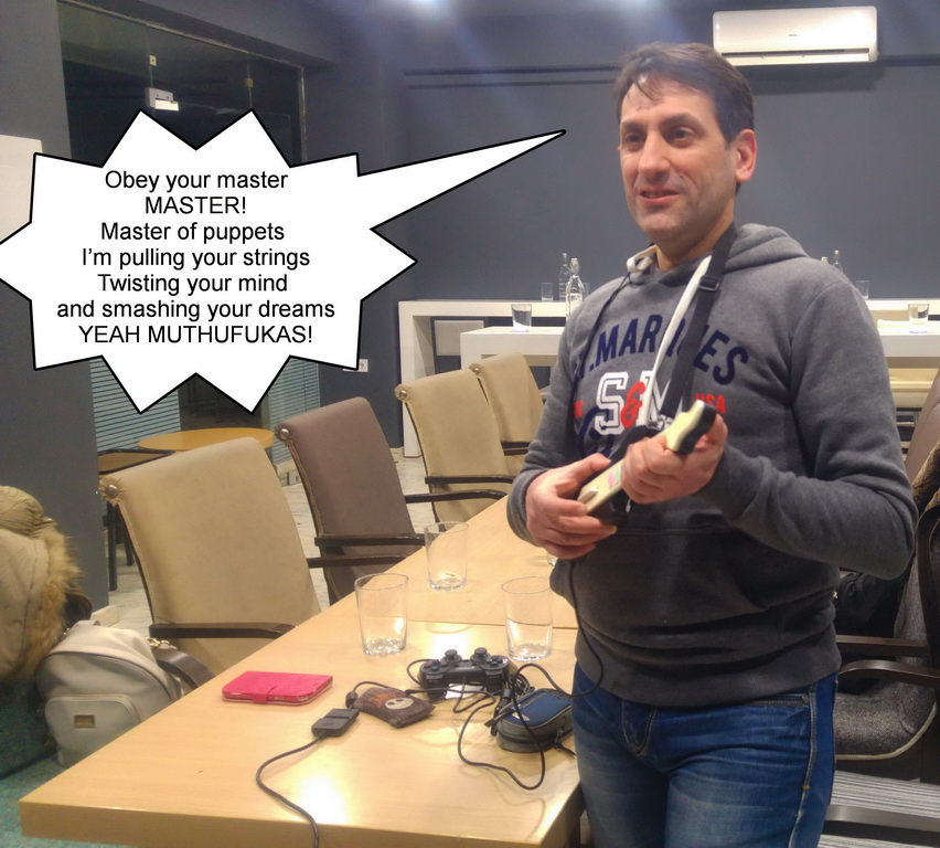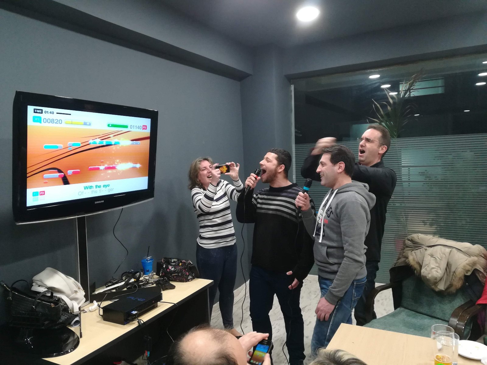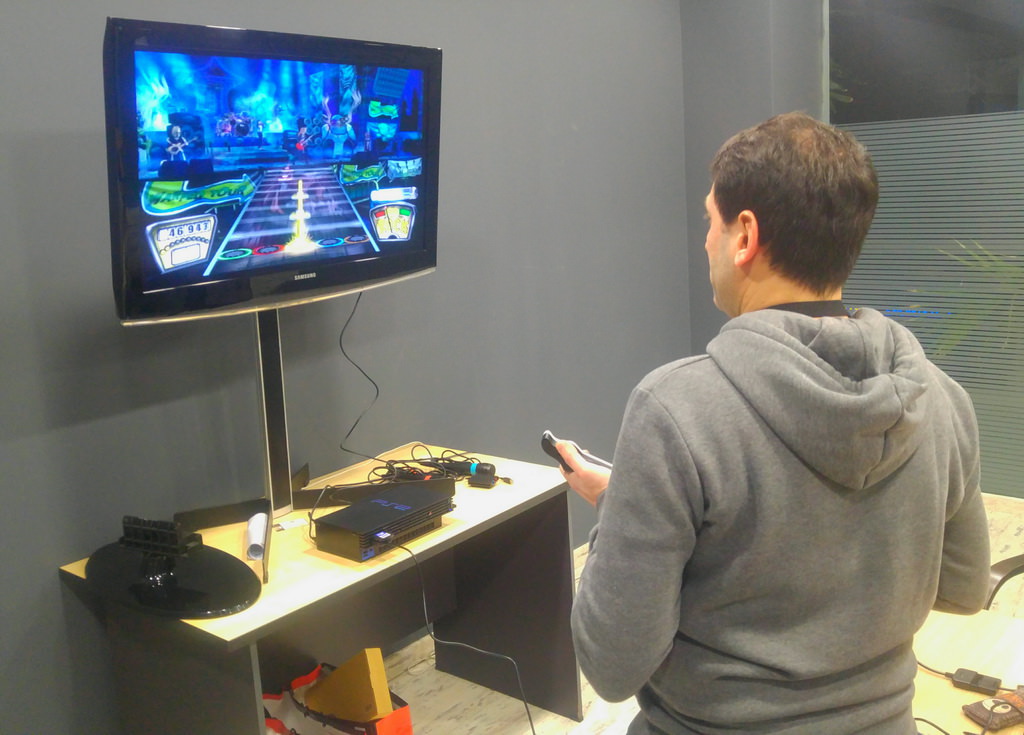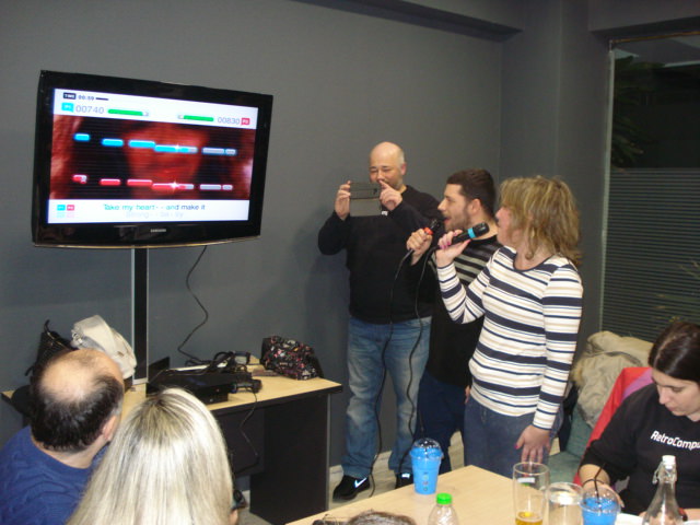 Μάλιστα λόγω και του ότι είχαμε κλείσει χώρο αποκλειστικά δικό μας στον πρώτο όροφο κάναμε ότι θέλαμε, οπότε ο chdlee φρόντισε να φέρει το PS2 του μαζί με το Guitar Hero και διάφορα καλούδια οπότε ο χώρος ξαφνικά απέκτησε κιθαρίστες και τραγουδιστές που διαγωνίζονταν στο καραόκε και στην κιθάρα για το καλύτερο score. Γενικά το κλίμα ήταν πολύ ωραίο.
