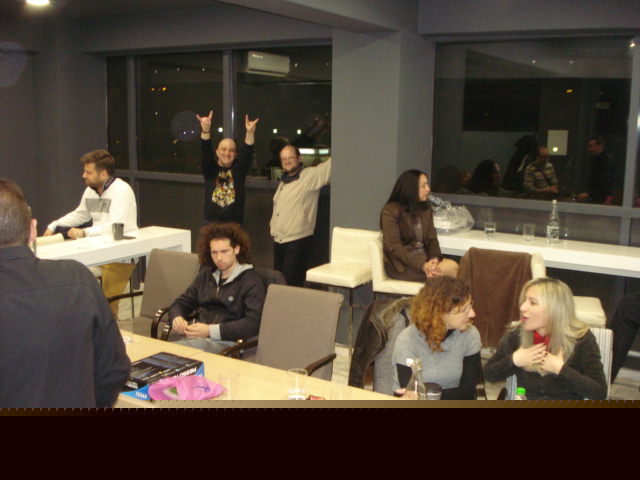 Αν και δεν μπόρεσα να μείνω αρκετά στην χθεσινή συνάντηση πέρασα τέλεια, νέες γνωριμίες με παιδια που γνώρισαν προσφατα το forum, γνωστές πλάκες με την γνωστή τρελιάρα φίλη μου (ξέρει αυτή!) κι ένας Χρήστος βγαλμένος απο τα... βάθη της heavy metal κουλτούρας των 80's, ξεσήκωσε την αίθουσα με τις ροκιές του...!!!