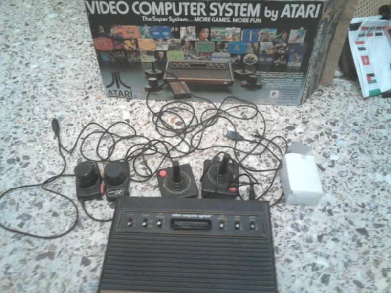 ATARI 2600 απο τα πρωτα που ειχαν κυκλοφορησει λειτουργικο πληρως αλλα χωρις παιχνιδια πωλειται στη συσκευασια του με τροφοδοτικο το οποιο εχει κι εκεινο το κουτακι του 2 atari joystick και 2 joystick περιστρεφομενα για παιχνιδια τυπου breakout pong κλπ ολα μαζι 60 €