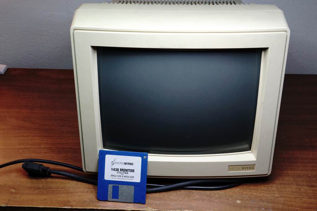 3. Οθόνη MicroVitec μοντέλο 14VC2CLS2, χωρίς ηχεία. Σε καλή κατάσταση, έχει γίνει recap πριν κάνα 2 χρόνια. Έχει τα θεματάκια του πχ αν το βάλετε σε VGA αλλάζουν τα πλαίσια της εικόνας, θέλει ρύθμιση εσωτερικά αλλά παίζει κανονικά την PAL ρύθμιση της Amiga. Μαζί με την δισκέτα της + αντάπτορας RGB to VGA.
