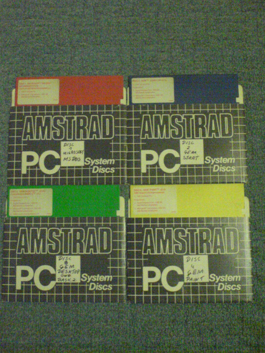 Οι αυθεντικές δισκέτες για τα 1512/1640 της Amstrad, σε πολύ καλή κατάσταση αλλά untested, μια και δεν έχω τρόπο να τις δοκιμάσω. Δε μπορώ να εγγυηθώ ούτε για το αν θα λειτουργούν αλλά ούτε και για τα περιεχόμενά τους, αλλά δε φαίνονται να είναι πειραγμένες ή ξαναγραμμένες...