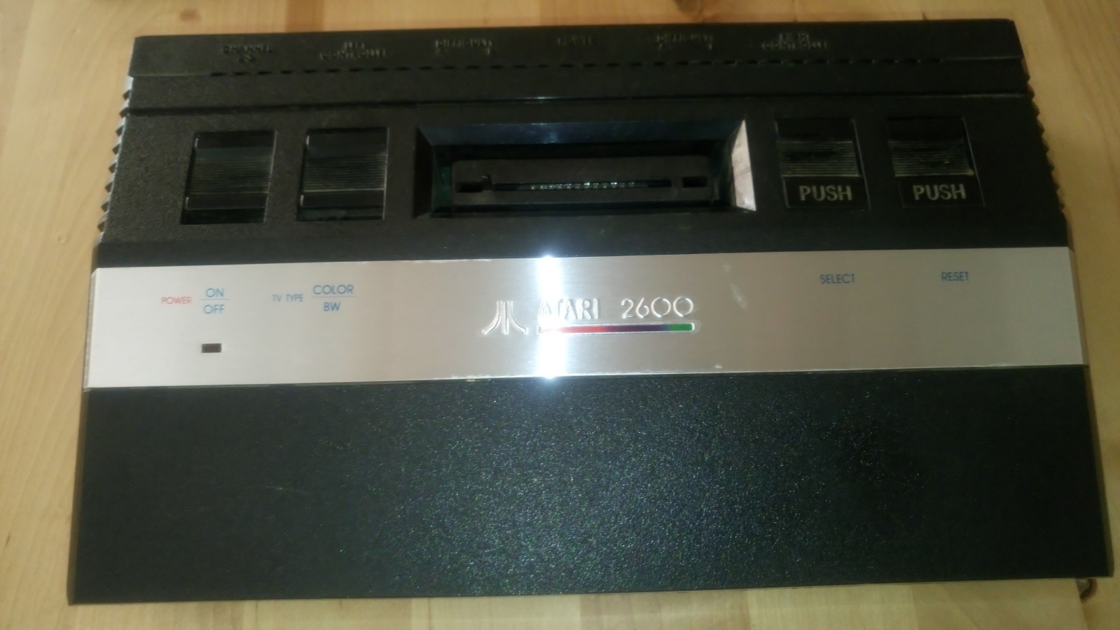 Το Atari 2600 Jr. Small rainbow, πλήρως λειτουργικό και καθαρισμένο εσωτερικά και εξωτερικά σε πολύ καλή κατάσταση. Μαζί του θα πάρετε 1 αυθεντικό atari joystick, το αυθεντικό power supply του, ένα καλώδιο σύνδεσης με tv και 2 παιχνίδια χωρίς κουτί (Mario Bros και Spider Fighter). Τιμή 50€.
