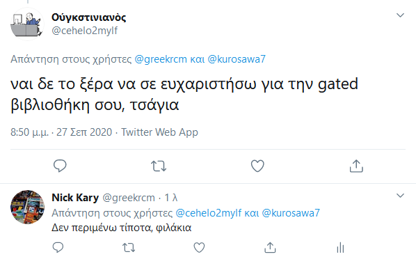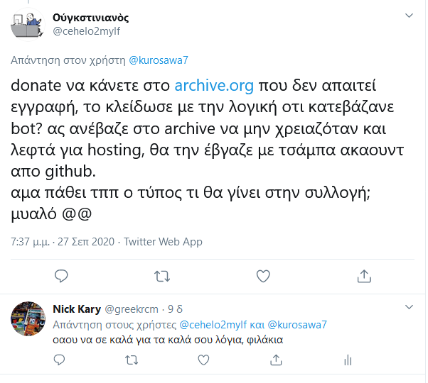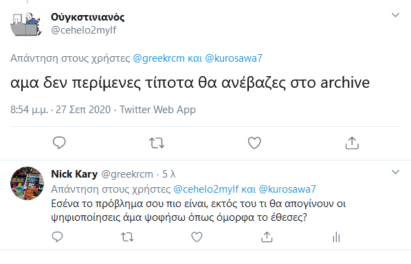 Για το άλλο θέμα παραπάνω που στην "πέφτουν" κάθε λίγο κάποιοι και σου λένε του στυλ "Μα γιατί δεν τα βάζεις εκεί?" ή "γιατί έχεις βάλει να κάνουν login?" κτλ δεν τα καταλαβαίνω - μέχρι και για ΜΚΟ γίνεται κουβέντα