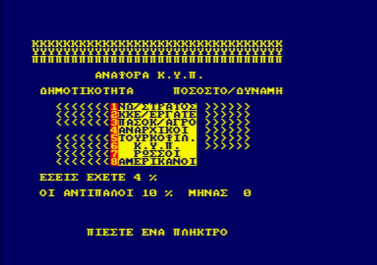 Ακόμα και το εξώφυλλο του παιχνιδιού με τις καρικατούρες των τότε αρχηγών κομμάτων της δεκαετίας του 80, μας εκκεντρίζει την φαντασία για το τι πρόκειται ν'ακολουθήσει…