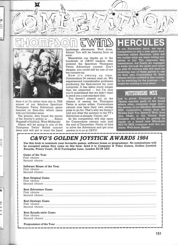 Το παιχνίδι κυκλοφόρησε και για C64 και οι κάτοχοι του Commodore 64 έπρεπε να ταχυδρομήσουν ενα κουπόνι mail-order στο περιοδικό για να παραλαβουν το δωρεάν flexi-disc τους. Επίσης στον C64, η ηχογράφηση του παιχνιδιού απο τον δισκο βινυλίου σε κασετα, ήταν ο μονος τροπος για να φορτώσουν το παιχνίδι.