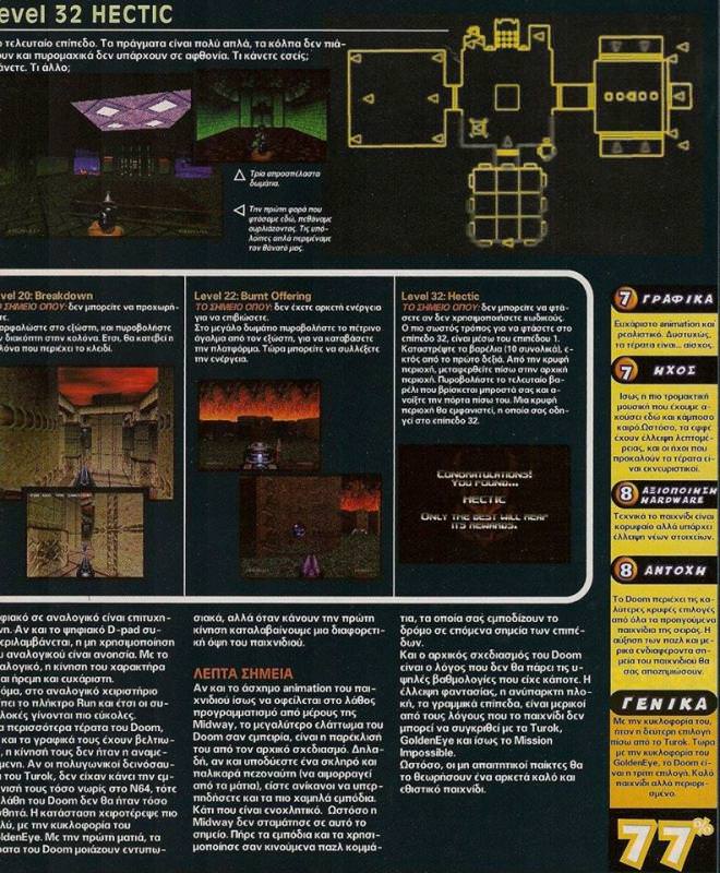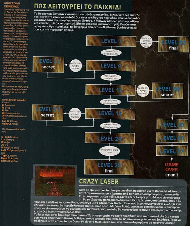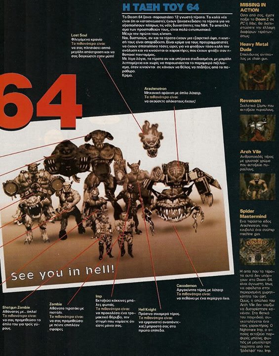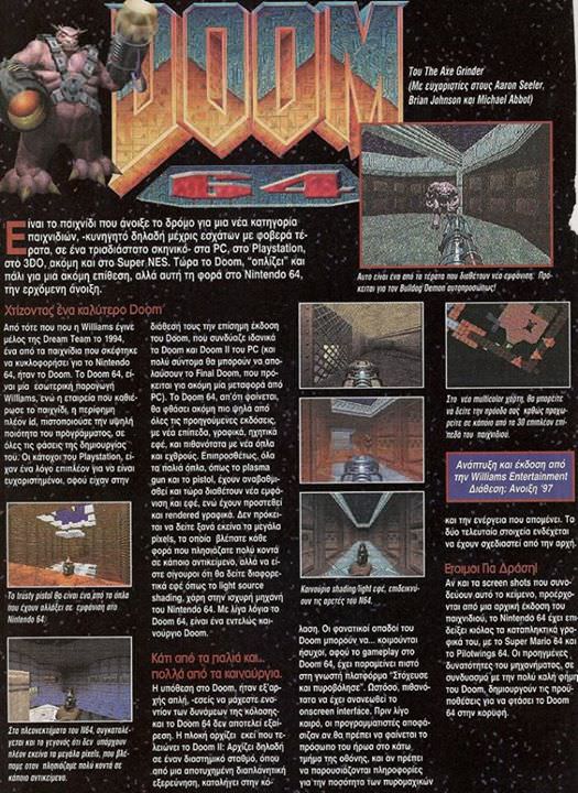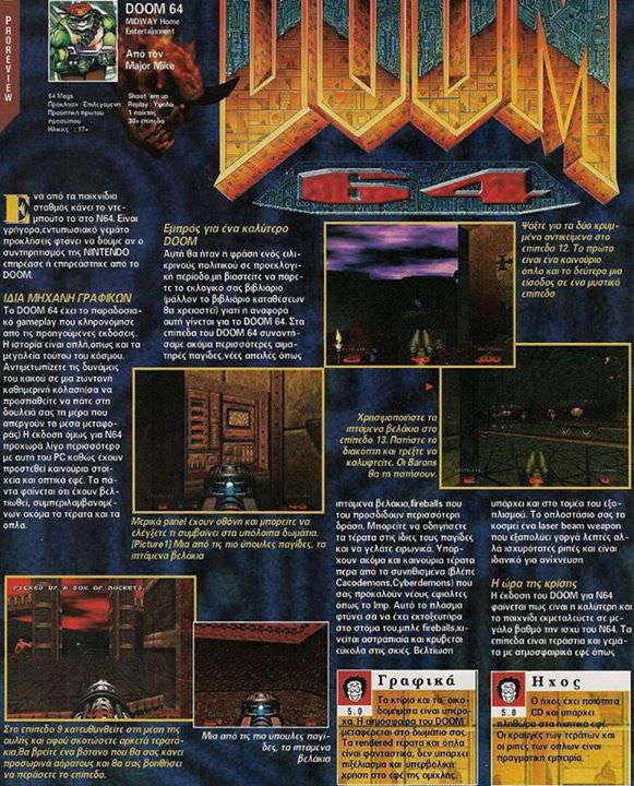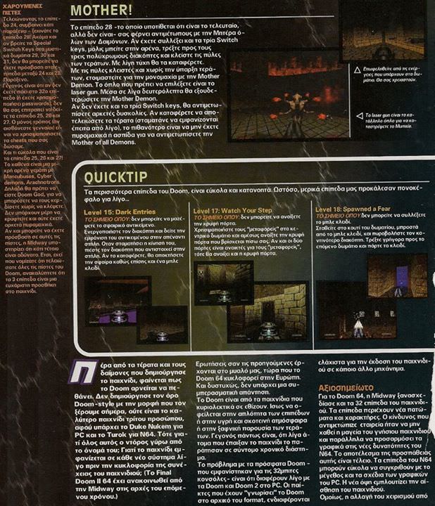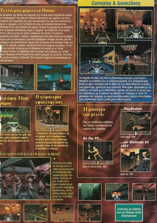 Απρίλιος 1998 και το Ελληνικό Gamepro δημοσιεύει έναν 6σέλιδο οδηγό στρατηγικής για το Doom 64.. Δείτε ένα μέρος..