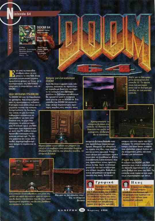 Μάρτιος 1998..δισέλιδο review του Gamepro στο Doom 64.. δείτε την πρώτη σελίδα..