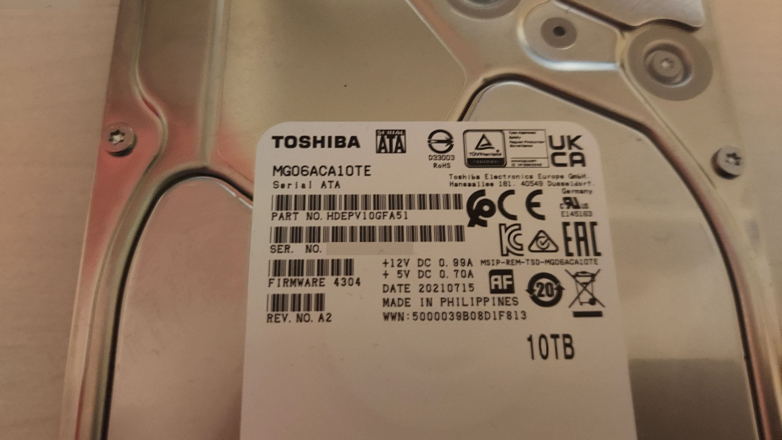 Αντικαταστάθηκε ο ένας εσωτερικός δίσκος των 3TB (5.400 RPM) με έναν σκληρό δίσκο των 10ΤΒ (7.200 RPM) της Toshiba και ο 3αρης κρατήθηκε για backup με την εξωτερική θήκη.