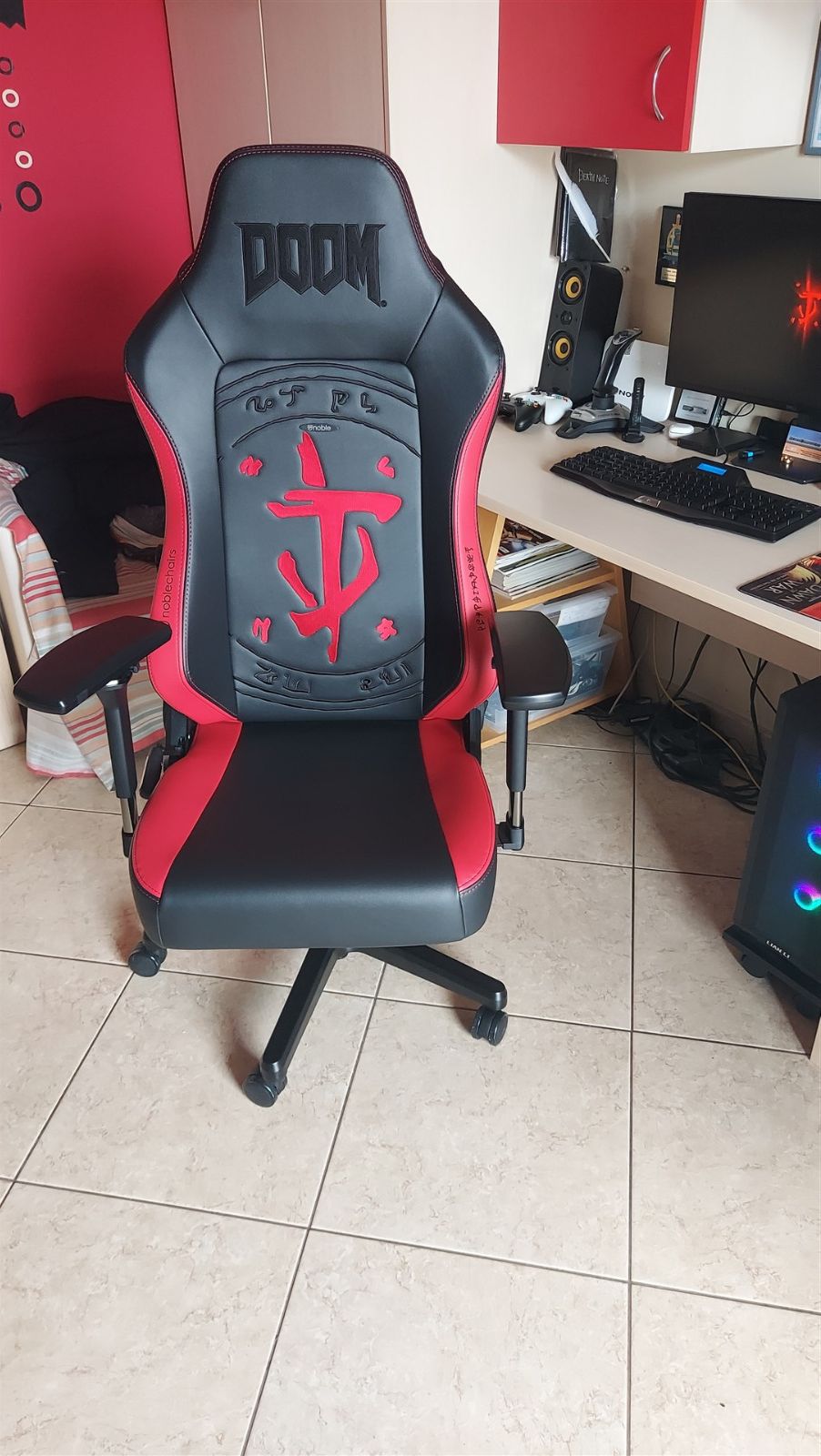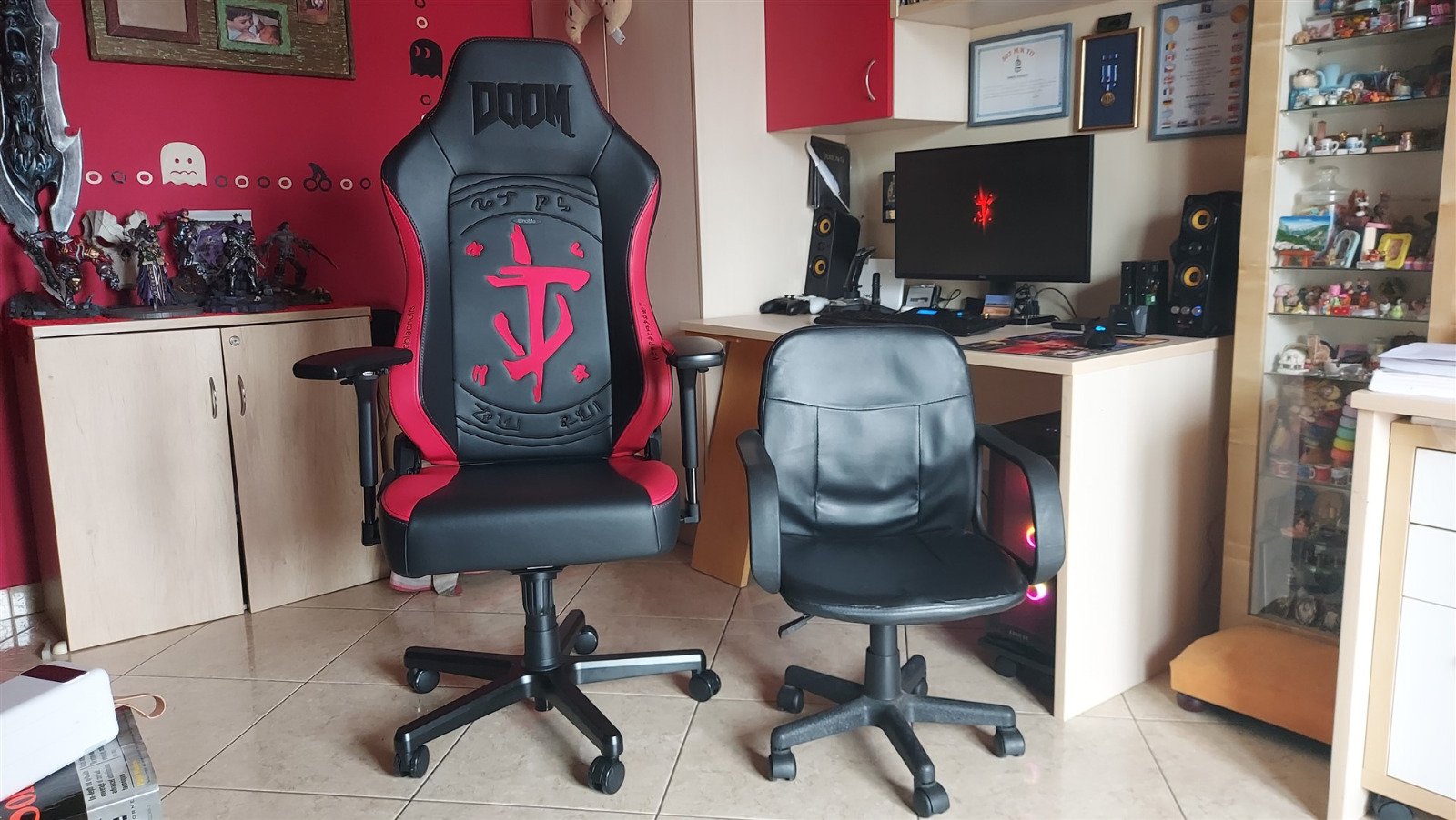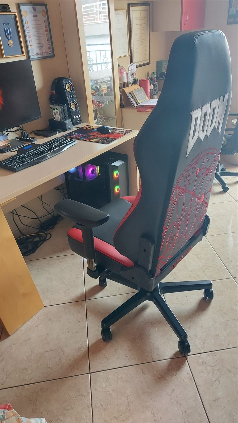 Επίσης είναι πολύ αισθητό που περισσεύει μπολικος χώρος σε σχέση με πριν που ήταν γεμάτο το γραφείο. Μάλιστα η DOOMοκαρέκλα το "καταβροχθίζει" που είναι μπροστά του και δεν φαίνεται καν αν είσαι πίσω από την καρέκλα.